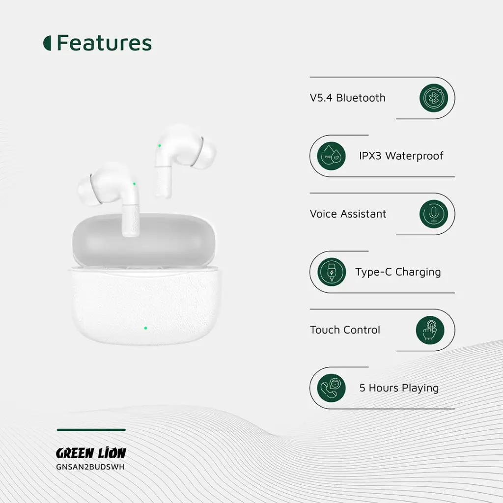 Green Lion Santorini 2 ENC Dual Mic Earbuds – White